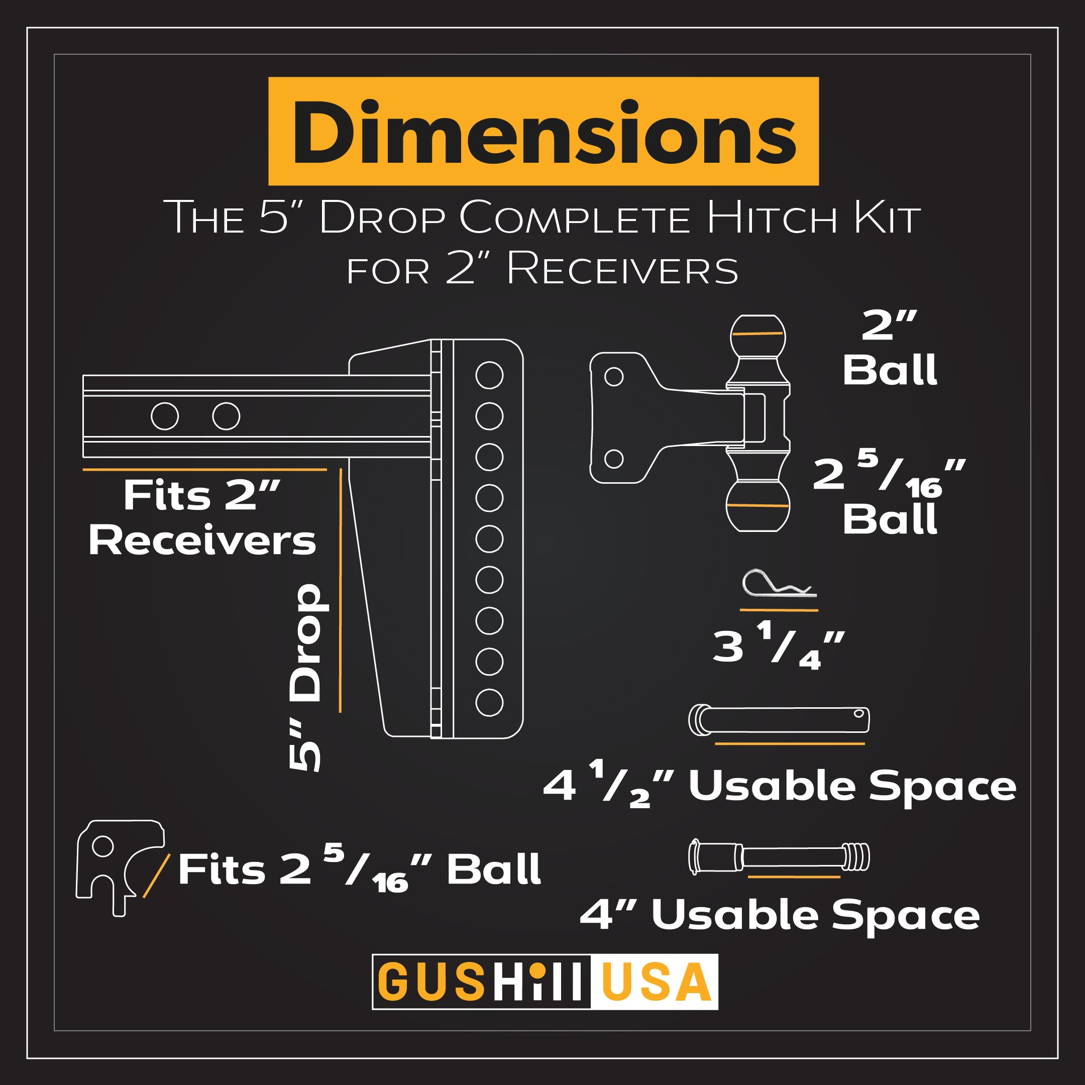 “Complete Hitch Kit for 2" Receiver with Dual Ball (5" drop)-GHC3235”