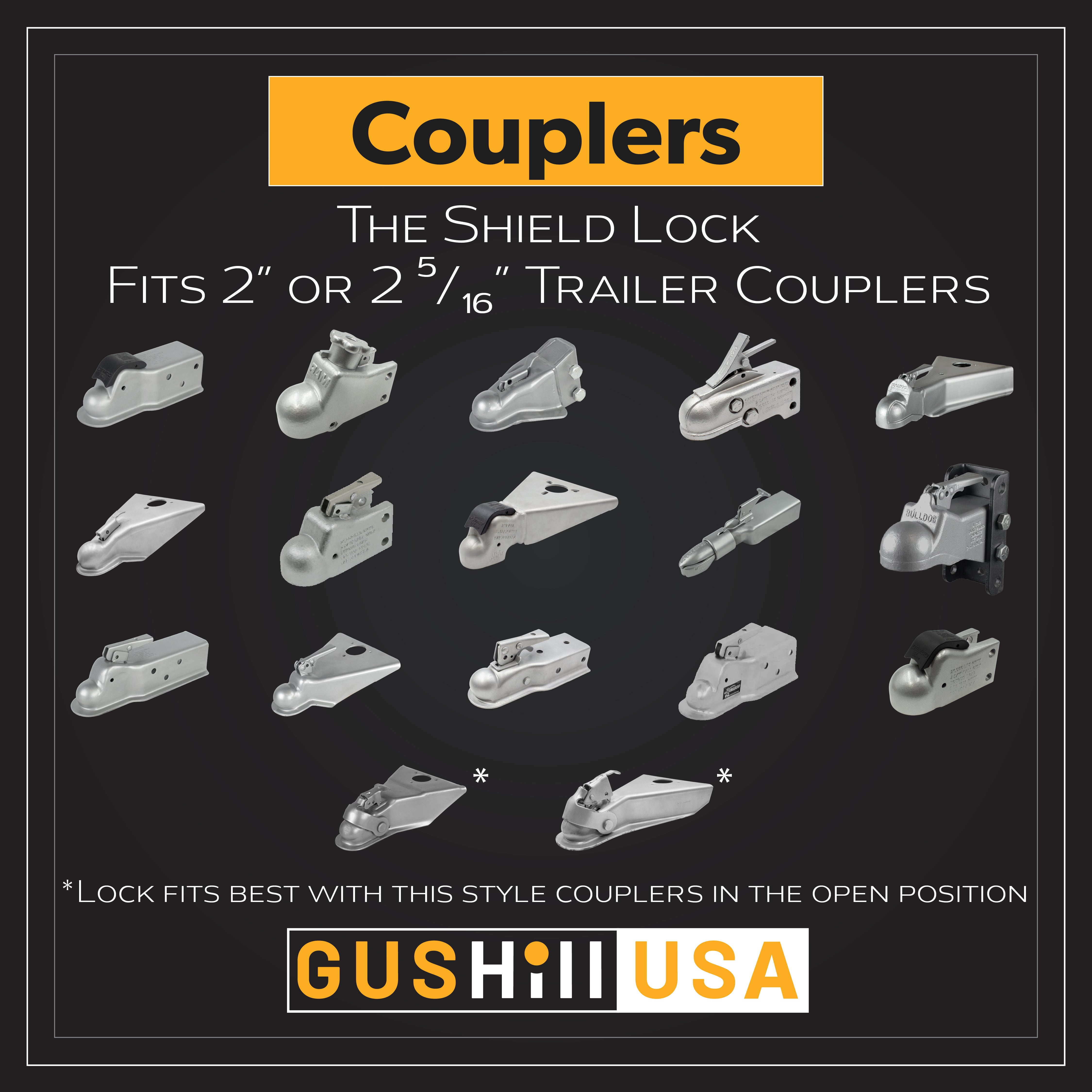 Our coupler lock is specifically designed to only fit the trailer couplers that are described in our lock fit guide.